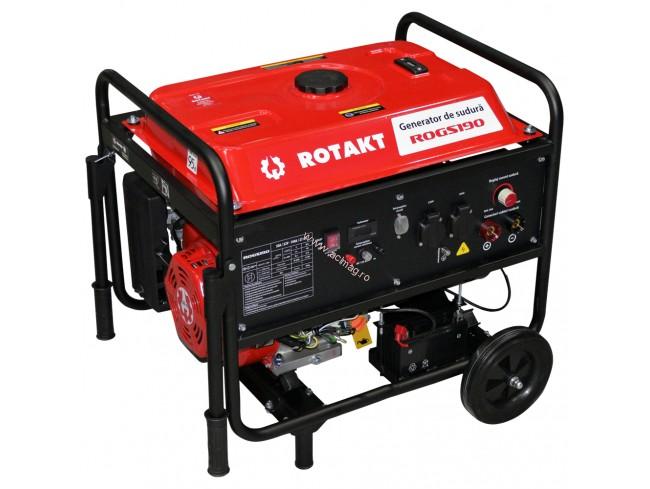 Generator de curent cu sudura ROTAKT ROGS190 are o putere de 3.9 KW, 190 A curent sudura, dotat cu un kit de transport, sistem de protectie la nivel scazut de ulei, voltmetru si iesire de 12V.
