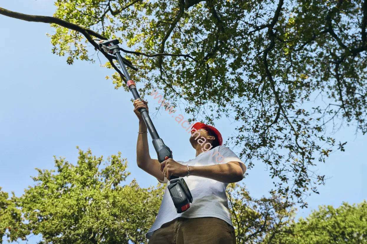 Este ușor de manevrat datorită designului său compact și ușor și poate fi folosit cu sau fără tija de prelungire ușor de atașat, care crește raza de acțiune pînă la 3 metri atunci cand tăiați sau răriți ramuri aflate la înălțime.