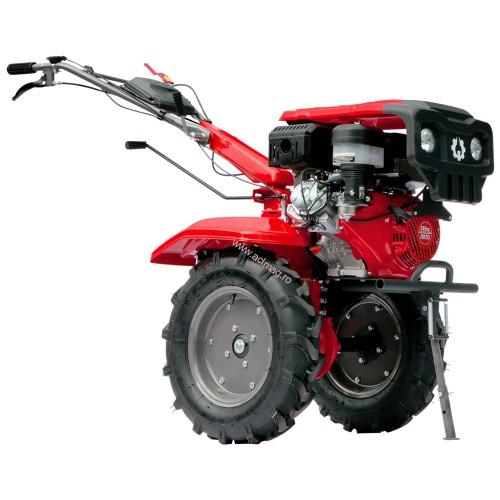 Motocultor pe benzina, motor 17 CP, cutie de viteze cu priza de putere, carcasa reductor din fonta, dotat cu roti de cauciuc, freze segmentabile cu 5 randuri de cutite. Este perfect pentru munca in gradina oferind posibilitatea de a atasa accesorii precum, plug de arat, plug de bilont, prasitoare, etc.
