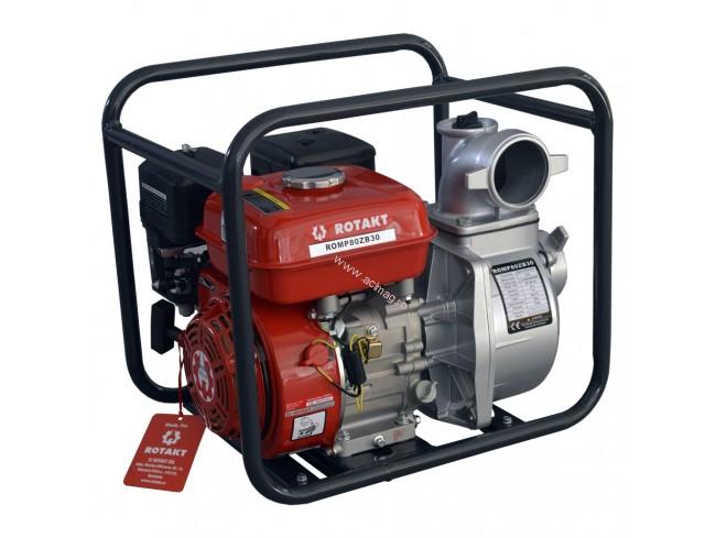 Motopompa Rotakt ROMP80ZB30 cu refulare si absortie pe 3" pentru apa curata cu motor pe benzina de 7.0 CP.